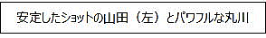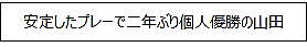 | 例年終盤まで白熱したゲーム展開のチーム戦ですが、好調選手が多かった青組が144対111で勝利 しました。 個人成績は御殿場合宿常勝の小笠原gが43ポイントでトップ。2位片山38と続きました。 H.C.調整後は山田が二年ぶりの優勝。B.B.は初参加の大島がゲット。 2日間の熱戦を終え、嬉しさ悔しさ混在の表彰、そして恒例のプレゼント交換後、無事解散となり ました。 |