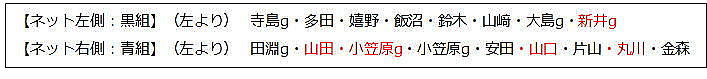 | 日時 ▶2025年 10月5日(日)~ 6日(月) 会場 ▶裾野市運動公園(10/5) 御殿場中央コート(10/6) 宿泊 ▶御殿場高原リゾート 時之栖 参加者 ▶ チーム戦組分け別 (カッコ内:個人戦H.C./敬称略/g:ゲスト/赤字:女性) 黒組: 多田(−15) 嬉野(−13) 鈴木(−13) 大島g(-12) 寺島g(−10) 飯沼(ー7) 山崎(−5) 新井g(+15) 青組: 小笠原g(−18) 金森(−15) 安田(−13) 田淵g(-12)片山(−7) 小笠原g(-7) 山田(+8) 丸川(+10) 山口(+18) |