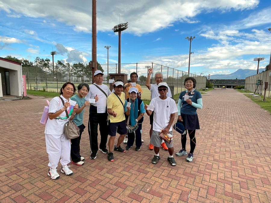 二日間とも心配した雨にも降られず、雄大な富士山の裾野でテニスを楽しめ、無事帰路に着きました。 当会の絆づくりの源泉になっている合宿を、これまで全て企画/主宰してこられた夏原ご夫妻、田仲 代表世話人は今回不在でしたが、多田世話人の豊富なアイデア(連携ツールとして合宿専用LINEの 設置・休憩者によるプレー写真撮影等)、および参加者皆さんのご協力で無事楽しく開催でき感謝に 堪えません。 金森 記(補筆 多田・田仲) ビデオ撮影:嬉野 写真撮影:参加者全員 |